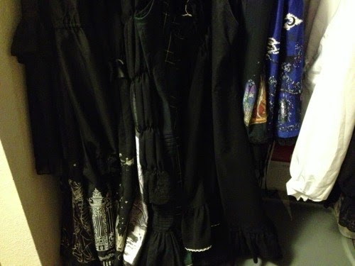 Since I purchased my first parasol, I've added two more to my closet--an offbrand chandelier-print parasol, and a plain black, collapsible parasol from Alice and the Pirates; the latter is able to collapse into a contained bag that can fit in most of my larger purses, or be easily carried on my wrist using the bag's straps. The convenience of the collapsible parasol has made it my go-to for most meetups, as it can often be difficult to justify carrying around a folded umbrella whenever you're inside. For shopping meets, they're simply too bulky; and that's when the collapsible parasol shines most. If you don't have one already, and are a parasol afficionado the way I am, I'd highly recommend that you look into getting one!